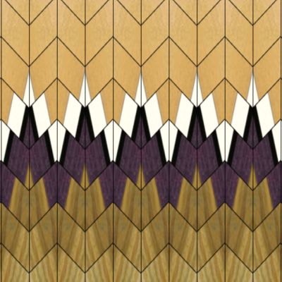 The easiest feature ring you can make for a segmented bowl might also be the simplest. For a Southwest design, you simply make a 1st generation chevron board and cut it into lengthwise strips and glue them back together. Lamination PRO will show you exactly where to make your cuts and the appearance of the finished design.
