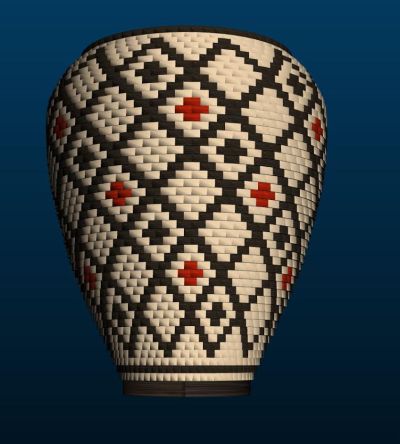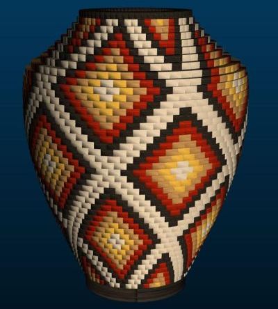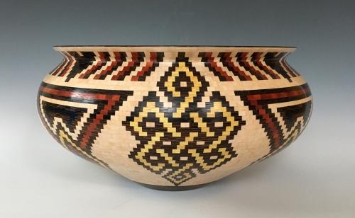 In a painted segment vessel, different colored wood species are used to create a design. These designs can be simple or complex or, in Tom's case, really complex.